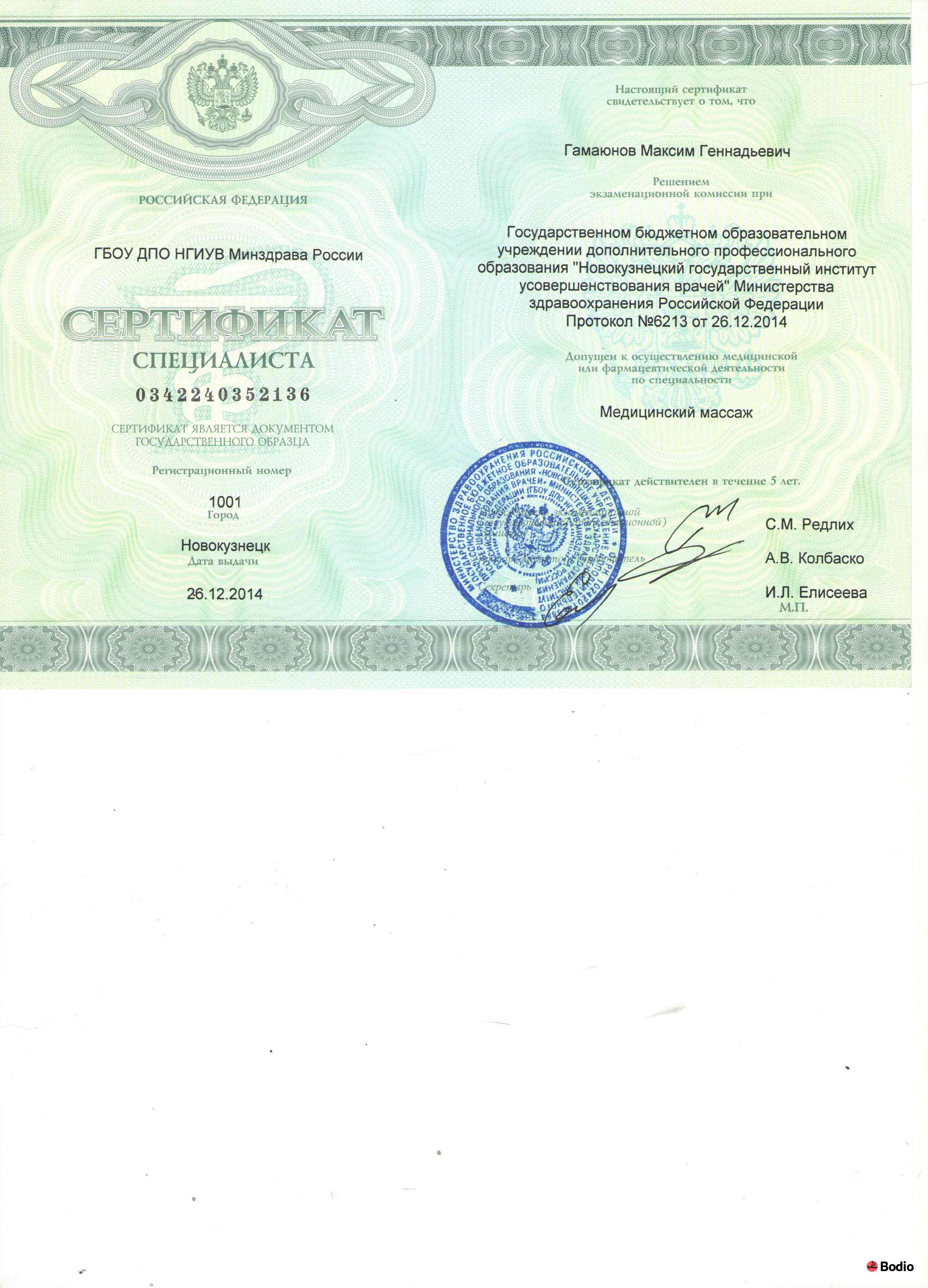 Профессиональные навыки:Знание анатомии и физиологии человека;