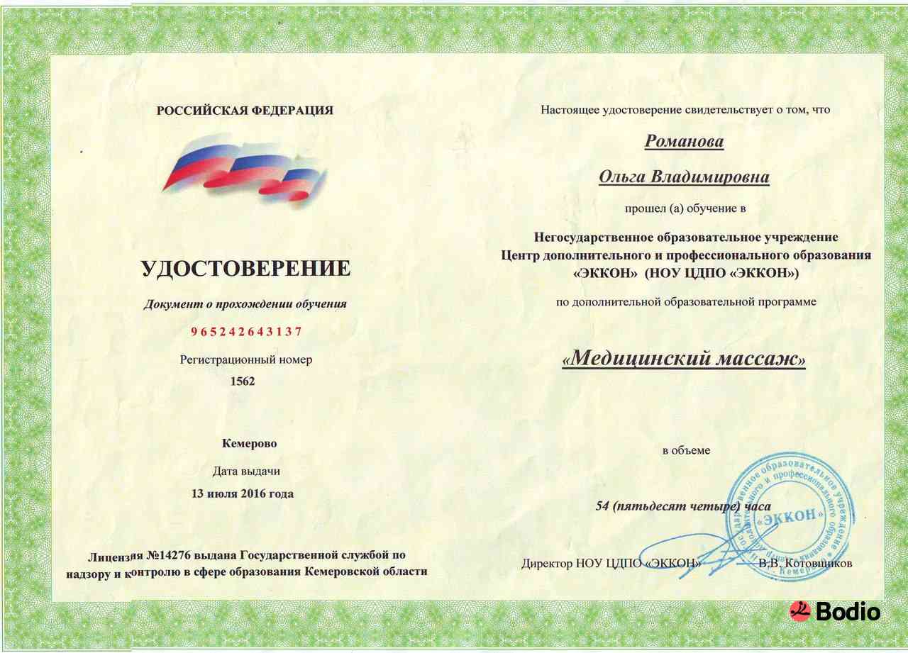 - Образование: медицинский массаж